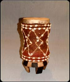 African Drum – Tchokwe Cowrie Shell Drum – SOLD
